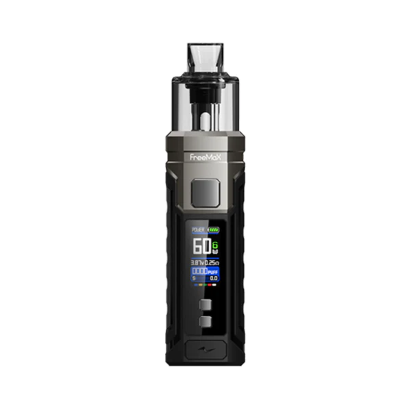 Check out the Freemax MARVOS KIT 60W Starter Kit. Featuring a integrate 2000mAh battery, 5-60W output range, and is rate IP67 against dust and water. Constructed to be resistant against water, dust, and shock. The MARVOS Pod Kit is formed from zinc-alloy and silicone rubber, helping maintain a durable configuration. Outputting between 5-60W, the MARVOS Pod Kit contains a 2000mAh battery to deliver plenty of function throughout the day. Without needing to be recharge. Holding up to 4.5mL of eLiquid within the refillable pod, there are two options of a PCTG pod or glass pod. Utilizing coils from the Freemax MS Coil Series, this kit comes with a 0.2ohm and 0.6ohm options for delivering unrivaled vapor and flavor.
